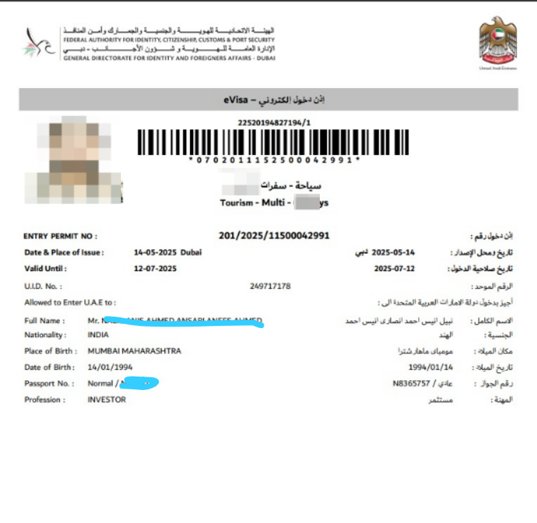 United Arab Emirates - UAE 30 Days Multi Entry Visa With Insurance