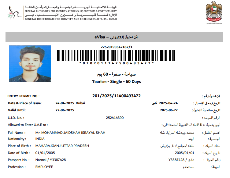 United Arab Emirates - UAE 60 Days Instant Visa