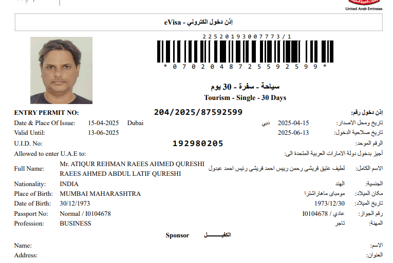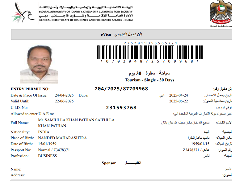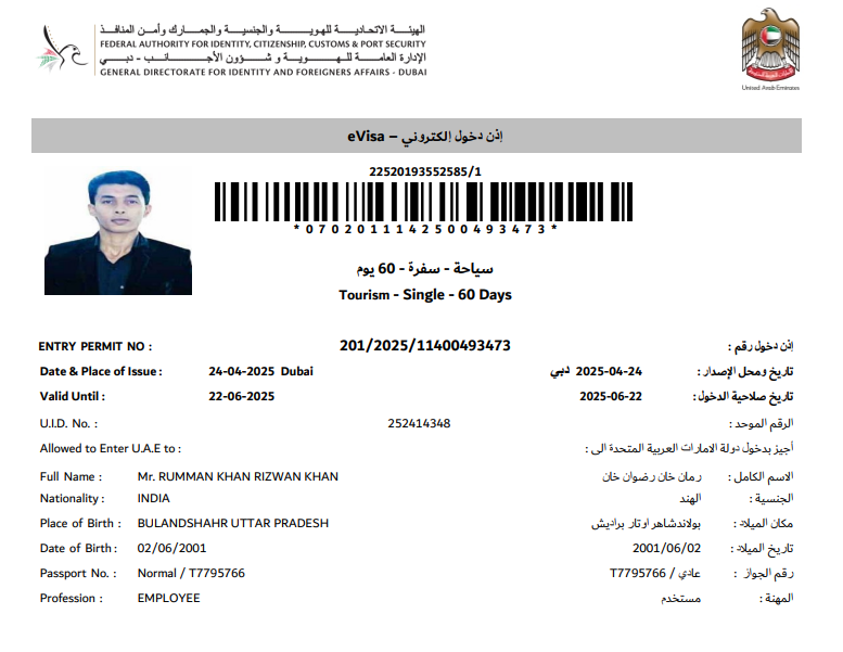 United Arab Emirates - UAE 30 Days Multi Entry Visa With Insurance